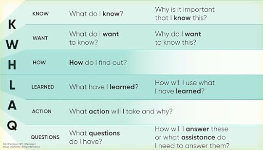 There is always an opportunity to build upon existing resources to make them more effective and meaningful. Hence the evolution of the KWL to KWHLAQ. Below, you will see what this chart looks like as presented in the book and the various question stems to spark and cultivate disruptive thinking. While I have developed some question stems for each category, educators can expand on them to align with local curriculum.