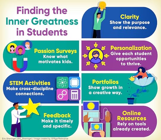 Finding out what really motivates and inspires kids can be one of the best uses of time an educator or school engages in if the act sparks changes to practice. These passions can be integrated into daily lessons through anticipatory sets and projects or dedicated genius hours at the school level. They can also be leveraged to make changes to curriculum and course offerings.