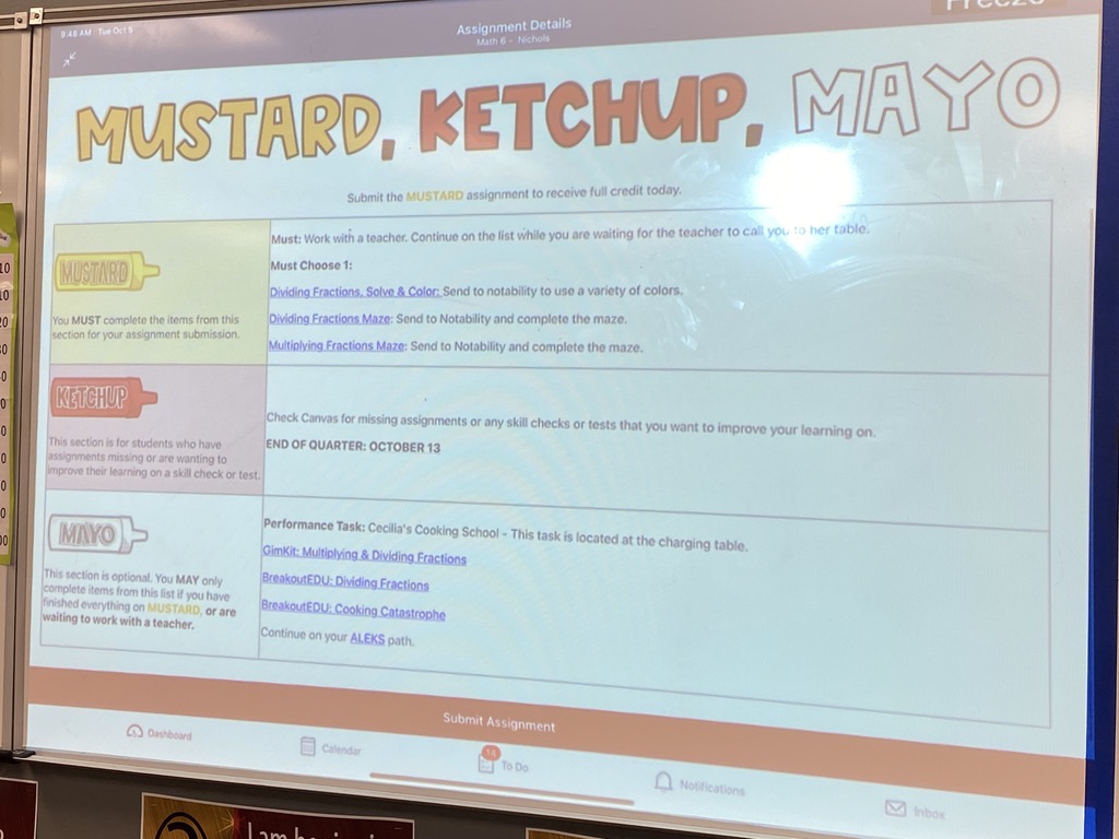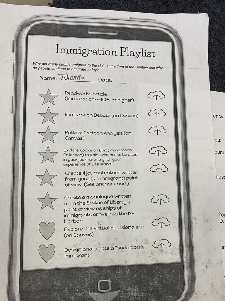 A series of individualized assignments that students work through at their own pace while following the path of their choice. As students complete a task, they either color in the corre¬sponding box on a digital sheet next to their name or check off each box on a paper worksheet. Unlike choice activities, all tasks are completed.