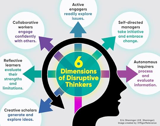 In Disruptive Thinking in Our Classrooms, I identified six dimensions of disruptive thinking. Now I didn’t refer to them as these in the book, but the purpose of my blogging is to share my reflections and expand on ideas. Maybe dimensions aren’t the proper term, but to create a culture of disruptive thinking in a classroom or school, learning should result in students developing into: