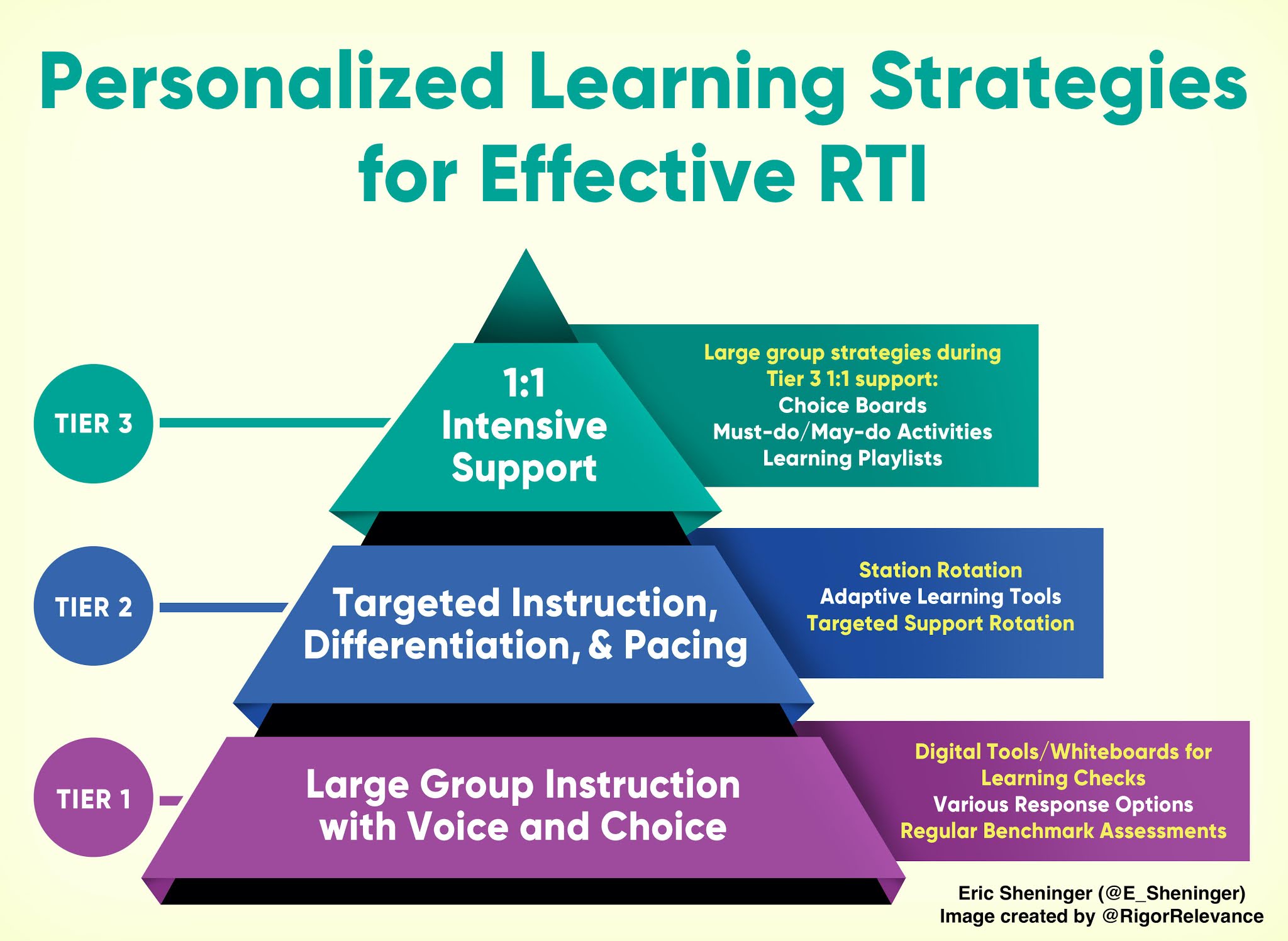 Below I have taken the traditional RTI pyramid of supports and added how personalized learning strategies could be implemented to ensure better learners are getting what they need.