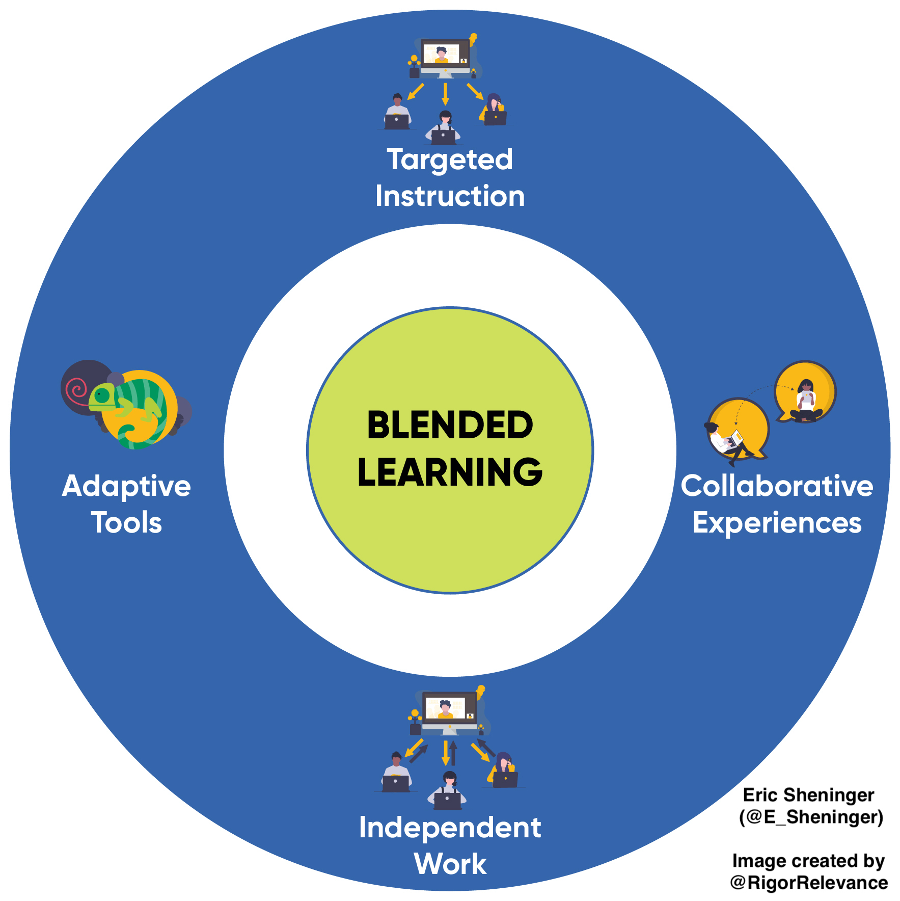Blended learning represents the most appropriate way to ensure equity through personalization. In Chapter 5 of Disruptive Thinking in Our Classrooms, I provide numerous strategies and classroom examples in alignment with the following models: