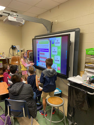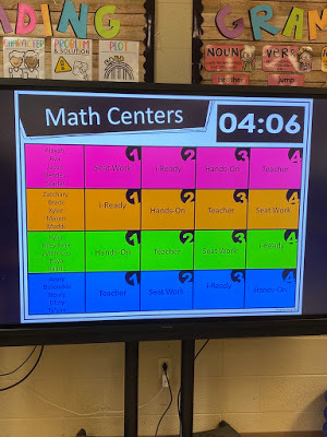 The image above can be adapted based on the length of the class period. In addition to the use of data for groupings, a timer for pacing is also essential as it aids in self-regulation and time management. An important aspect is to build in activities that promote collaboration. Here is where an interactive whiteboard (IWB) can be used to unlock its true potential. Below you will see two examples from Corinth Elementary School that meet all the requirements for an effective station rotation.