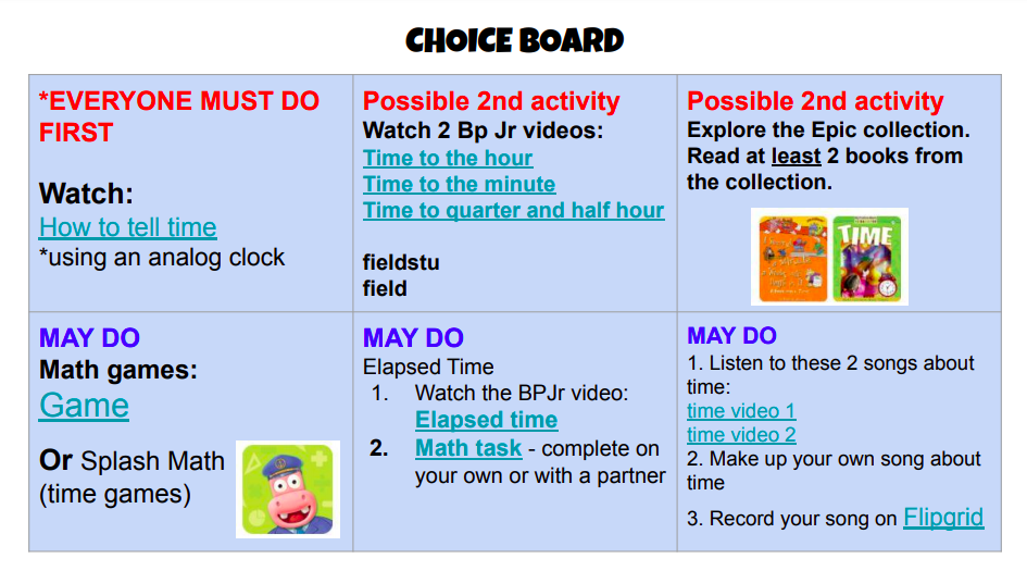 It has been incredible watching Betty, and her colleagues at Corinth Middle School grow over the past couple of years. As I think about what she created, I can't help but reflect on all the many different choice activities I have seen in classrooms or those shared virtually. Below are some tips to consider as you either develop, refine, or provide feedback on your own options.