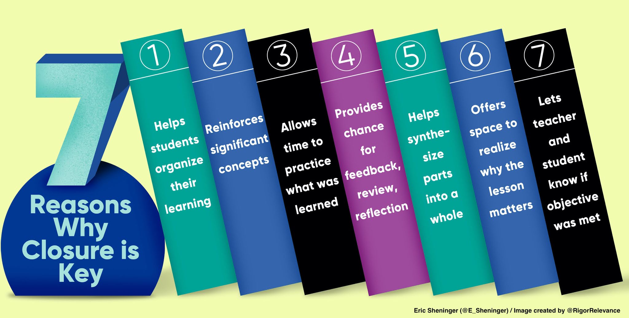 No matter where I am, one aspect of instructional design that I often identify as an area for growth is closure. I have written in the past how important including this strategy is, no matter the grade level of students or the content being addressed. Closure draws attention to the end of the lesson, helps students organize their learning, reinforces the significant aspects of the concepts explored, allows students to practice what was learned, and provides an opportunity for feedback, review, and reflective thinking. It is hard to determine the effectiveness of a lesson or whether learners understood the concepts presented without some form of closure.