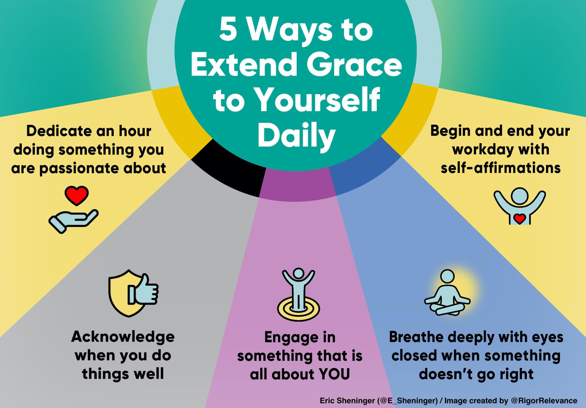 Dedicate an hour doing something you are passionate about.Give yourself a pat on the back or even look in the mirror while stating that you did well today.Engage in something that is all about YOU.Close your eyes and take a deep breath when something doesn't go right.Begin and conclude your workday with self-affirmations.