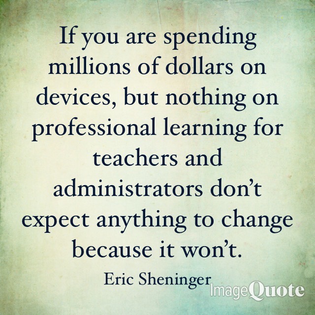 Just putting a device in kids' hands and expecting learning miracles to materialize is wishful thinking at best. Ongoing support is needed to usher in pedagogical change while building capacity. Teachers and administrators deserve this investment if large sums of money are being spent on devices. Without this support, the overall goal of the purchase might never be realized.
