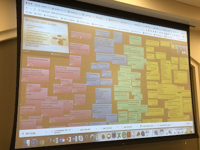 The jigsaw technique is a method of organizing classroom activity that makes students dependent on each other to succeed. It breaks everyone into groups and breaks assignments into pieces that the group assembles to complete the (jigsaw) puzzle. Just as in a jigsaw puzzle, each piece — each learner’s part — is essential for the completion and full understanding of the final product.The participants were broken up into four different groups, where each had a specific task to complete. Roles were assigned within each group, a timeframe for completion was established, and accountability structures were put in place. For the latter, I used the tool Lino where each group was assigned a different colored digital Post-It in order to report on their responses to a specific question. The combination of sound pedagogy with the purposeful use of technology replicated what the teachers and students alike could experience in the classroom. Below you can see what the participants created.