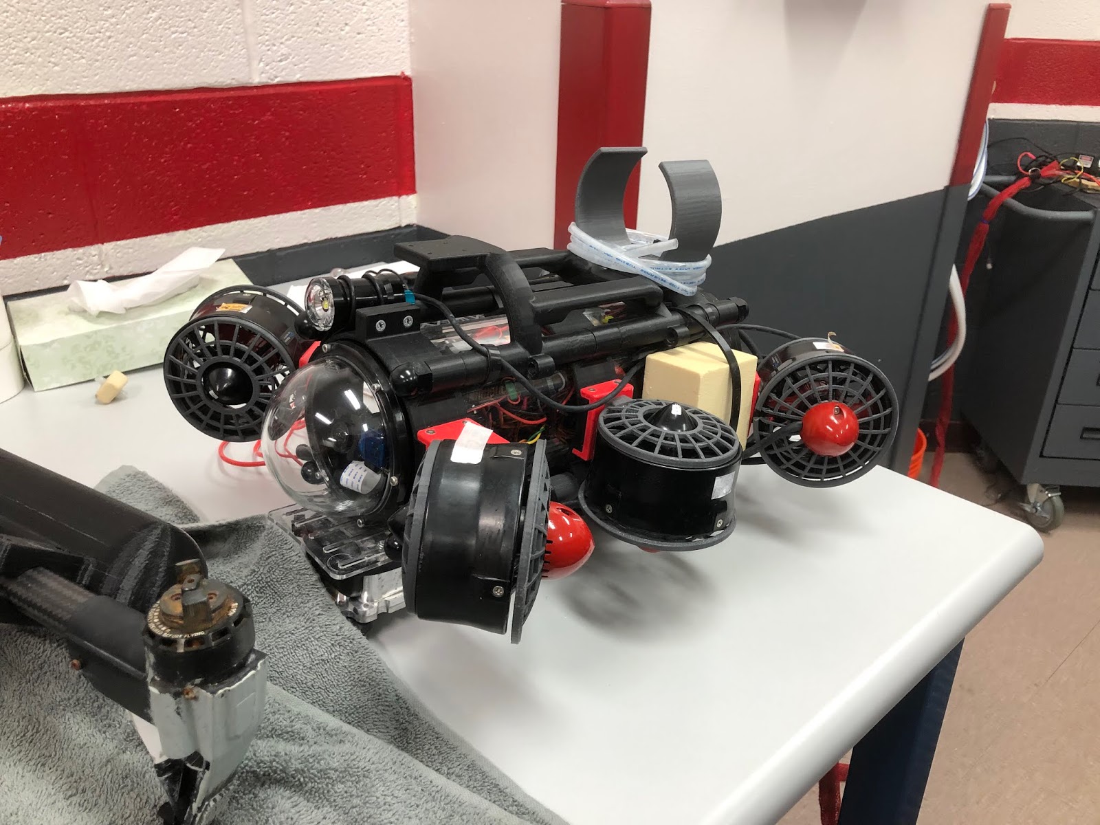 Marine robotics lab (M.A.T.E. - Marine Advanced Technology Education) where kids design and test their inventions in a large water tank purchased by the board of education. Not only do the kids develop robots that have received national acclaim, but they also create marketing and branding for their creations. I loved seeing the unique logo they designed for the class on the wall.