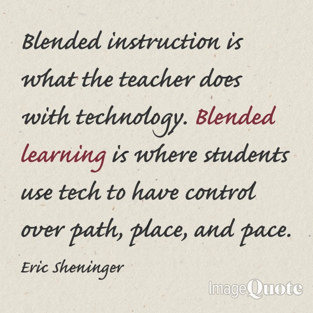 Personalized learning represents a movement from the “what” to the “who” as a means to facilitate student ownership of the learning process. It considers the tailoring of pedagogy, curriculum, and environments by or for learners to meet their different learning needs and passions. In many cases, but not all, technology is a catalyst to facilitate the personalization of the learning environment.The lofty outcomes listed above can be accomplished using a variety of innovative strategies. The key is to shift the balance of power and time from instruction (what the teacher does) to learning (what the kid does). Blended learning, as a means to personalize, is one way to accomplish this. However, there still seems to be a great deal of confusion as to what this really entails. Many times, blended instruction is confused with blended learning. Here is the difference.