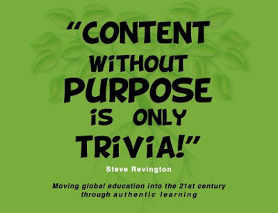 When reflecting on the last question in the paragraph above, I think about the following quote from Steve Revington, “Content without purpose is only trivia.” Learners today are not as compliant or conforming as many of us were back in the day nor should they be. Whether we are talking about authentic or relevant learning, kids inherently want to know what the higher purpose is and who can blame them.