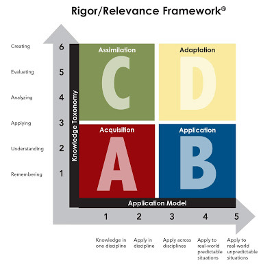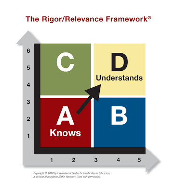Make the shift to personal learning goes right back to finding the right balance between instruction and learning. Success in this area requires a shared vision, language, and expectations that not only make sense, but also jive with curriculum, standards, and assessment. Enter the Rigor Relevance Framework. Now I am not going to rehash the details of this tool as I have been writing about it for years, but I will provide an image of it below. The essence of the framework is quite simple as it allows for a lens for teachers and administrators to determine the level of thinking and relevant application that kids demonstrate while engaged in the process of learning. Instilling a purpose of learning while challenging all kids in the learning process is at the heart of a more personal approach.