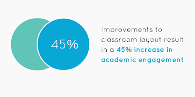 Students spend an average of 12,000 hours in the classroom in their lifetime, and these hours are important. Not only does time spent in the classroom impact student learning, but studies show that the physical layout of those classrooms (variables including use of light, color and wall space) have a significant impact on student behavior, motivation and achievement. For example: did you know that students who are exposed to more daylight in the classroom score up to 26% higher on math and science than students who less exposure to light? Design sure does empower learning.