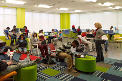 Digital leadership looks at societal trends as inspirational elements and potential catalysts for change in the structure of the schools themselves as well as the designs of programs. It is a call to action challenging leaders to critically reflect on the learning spaces and environments that embody a school. Do they meet the needs to learners today? Do they foster and inspire creativity, provide flexible opportunities to learn, and address unique and specific interests? Are they reminiscent of what students will expect in today’s world? I will be the first one to admit that the learning environments and spaces at New Milford High School looked nothing like this prior to 2009. Our goal now is to try our best to create a physical space and overall environment that offers flexibility, choice, and tools that our learners will experience upon graduation. With the pedagogical shifts outlined in the last post in this series our success will be determined by the transformation of learning spaces and environments that support these instructional changes.