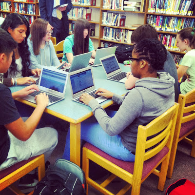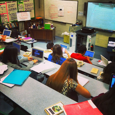 English 9 students blogging using a combination of their own devices, Chromebooks, and MacBooks.