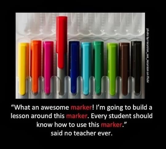 When it comes to technology we must always ask ourselves how will this tool support learning and allow students to demonstrate conceptual mastery. There must be more of a concerted focus on learning outcomes, construction of new knowledge leading to authentic application, and the development/enhancement of essential skills (creativity, critical thinking, problem solving, digital citizenship, entrepreneurship, media literacy, technological proficiency, communication, collaboration). The assessment and feedback pieces are also critical. Now let me attempt to tie this back to the first image contained in this post. Technology can be a powerful learning tool if we don't focus on the one marker, but instead what we want our students to be able to do with their choice of makers to support and demonstrate learning. I welcome your thoughts on this.