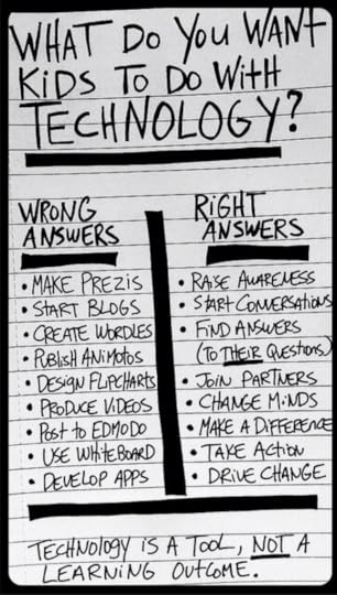 The key is to determine what we want our students to know and let them have a choice as to how they will demonstrate and/or apply their learning. At NMHS we place a great deal of emphasis on creating artifacts to demonstrate conceptual mastery. Technology can become a nice pedagogical fit when viewed this way. Our motto is pedagogy first, technology second if appropriate when integrating mobile learning devices. Another image created by my friend Bill Ferriter puts into perspective the importance of establishing learning outcomes when integrating technology as part of the teaching and learning process.