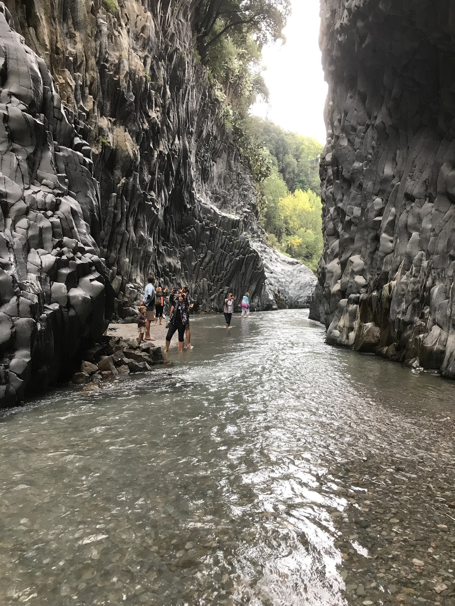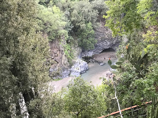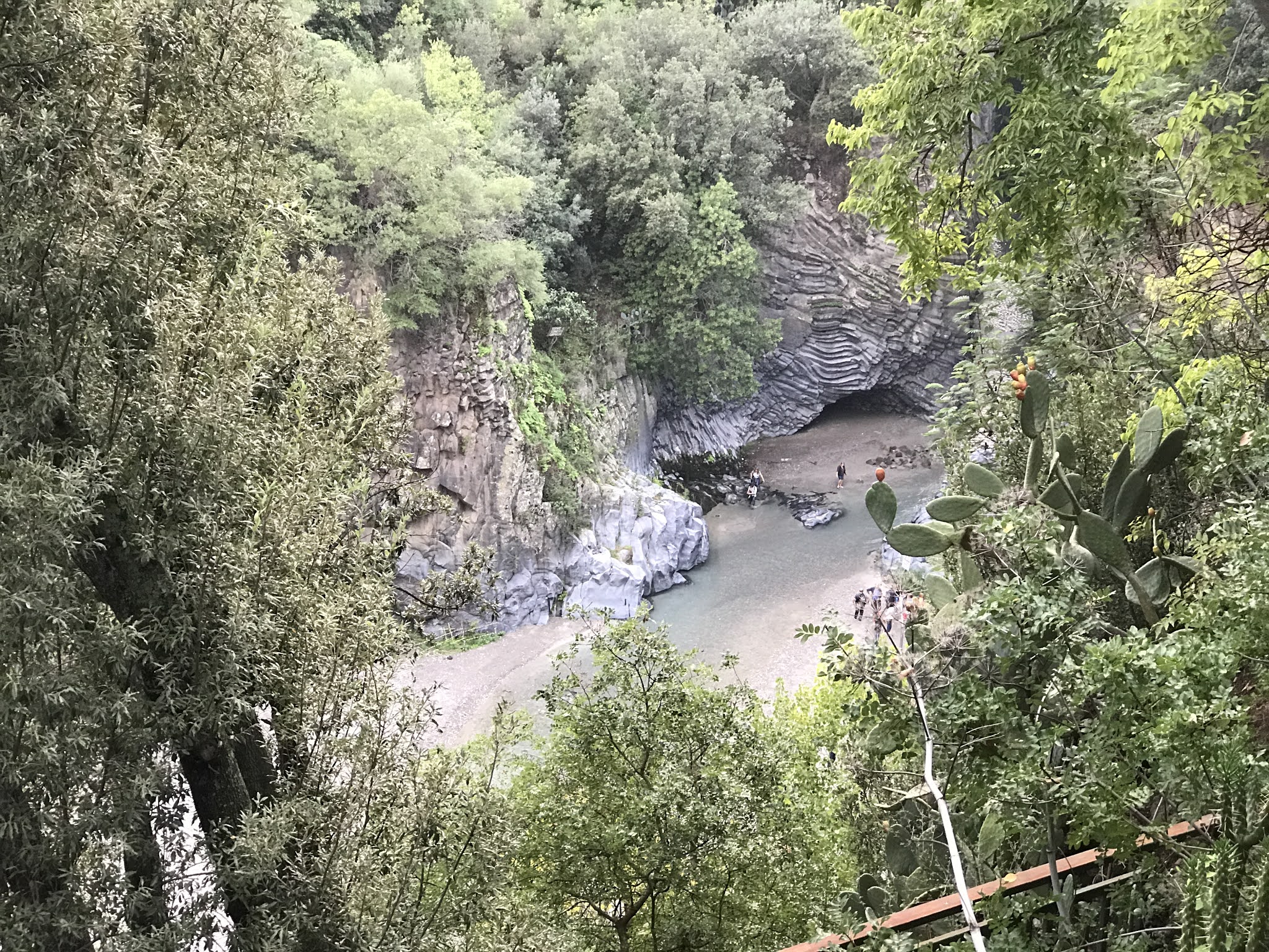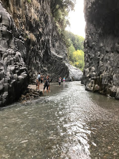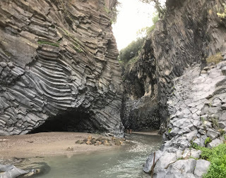 I’m not quite sure how, or why we ended up at Alcantara Gorge. I suspect we had exhausted the charms of Taormina and we were looking for a way to fill an hour or so, and there was a throwaway line in a guide book that made it sound interesting. The approach isn’t auspicious. It’s like a low budget theme park with a rather empty car park and turnstiles. But the gorge itself was a surprise. Sue is a geologist so she loved it. I can’t remember the technical explanation behind the curious rocks. It has to do with the volcano (the gorge is on the foothills of Etna). I don't need to know. But it is pretty spectacular. Worth the trip if you’re visiting Taormina.