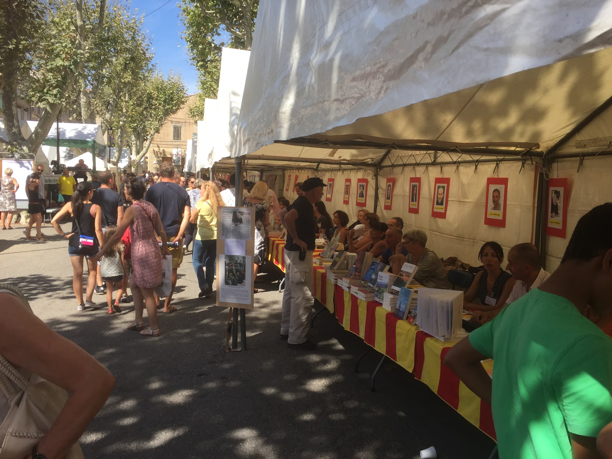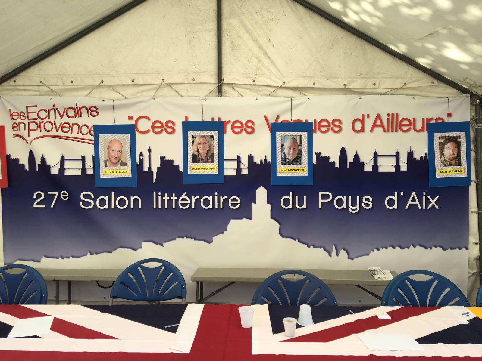 Every autumn the lovely, hilltop village of Fuveau, in Provence, hosts a three day book festival. And what a festival! Book lovers come from all over France. There are also a couple of hundred authors, all with books to promote. (I am shamelessly guessing that number. Maybe someone will tell me the real figure some day and I can correct it). The writers all sit behind tables in the main town square, with heaps of their books on display. It is like a huge flea-market for books. Visitors browse around and look at the books, and chat, and occasionally they will buy one and the author will sign it, and it is all enormously convivial and very French. The festival is organised by Les Ecrivains en Provence. Each year they invite four guest writers from another country, and for these fortunate authors they put on a generous display of Provencal hospitality, and as you might expect, there is music and frivolity, and a great deal of wine is drunk, and food consumed. In 2016 Britain was the featured country and I was hugely privileged to be one of the four British writers invited to be there (the others were Stuart Neville, Amanda Hodgkinson, and the brilliantly entertaining Peter Gutteridge.) If you happen to be in the South of France in the autumn, check their website. (https://www.fuveau.com/SSL.htm) – you might just catch the festival. You don’t have to be French to enjoy it. And Fuveau itself is a charming place.