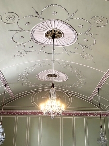 The highlight of its interior is the ballroom designed by Franciss Sandys, who died in the 1820s. .The barrel-vaulted ballroom is the full height of the building. What impressed me was that its beautiful stuccoed ceiling resembled the kind of ceilings designed by the great architect Robert Adam (1728-1792).