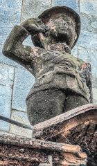 The saluting soldiers (‘soldados’ in Portuguese) might indicate that someone in the house had been in the military. Alternatively, some people, who had been in favour of Goa becoming independent of Portugal, added these after India had ‘liberated’ Goa from Portugal.