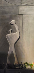One external wall of a club building has been adorned with a huge panel decorated with two Modulors. The Modulor is a symbol created by the great pioneer of 20th century architecture, Le Corbusier. It looks like a man with one arm raised and was designed by Le Corbusier to be “ a visual bridge between two scales: the metric and the imperial…” It was also connected with his philosophy that the proportions of structures should be related to those of the human body.