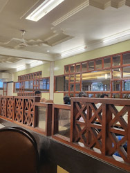 The interior of Kamat never changes. It has probably looked as it does today ever since it opened sometime before my fist visit to Bangalore. Its walls are simply decorated with mirrors and polished woodwork. A wooden barrier runs along the midline of the rectangular seating area, which comprises basic tables and chairs.