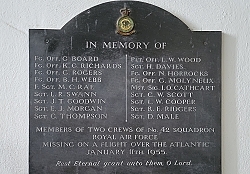 “Members of two crews of No. 42 Squadron Royal Air Force missing on a flight over the Atlantic. January 11th 1955.”