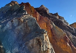 The colouration of the cliffs is caused by the presence of oxidised iron compounds formed under different conditions.