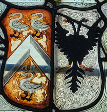 THE GREAT HALL of Lytes Cary Manor House in Somerset has some stained glass windows decorated with crests relating to the Lyte family, who owned the property between the 15th and 18th centuries. One of the crests caught my eye because the crest contains a double-headed eagle. This is a symbol that began to interest me in my teens when I first became fascinated by the Balkans. The double-headed eagle figures on the flags of Albania and some of its neighbours. The earliest known use of this peculiar creature is on seals used to secure goods in Babylon during the 3rd century BC.