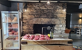 On stepping through its entrance door, the first thing you will notice is a large wooden butcher’s slap piled with raw steaks of various kinds and cuts: sirloin, rumps, chateaubriand, rib eyes, huge tomahawks, and other tasty chunks of meat. Behind this in what was formerly a fire place, there is a sophisticated charcoal grill for cooking these meaty offerings. A chef coats the meat with sprinkling of salt, oil, and herbs before grilling it.