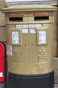 To celebrate Britons who won gold medals in the 2012 Olympic Games and Summer Paralympics, the Post Office painted several letter boxes with gold-coloured paint. It was originally planned to be a temporary measure, but as the public gave it much approval, the boxes have remained gold,