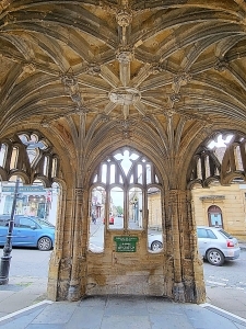 A SMALL SIX-SIDED stone structure stands in the heart of the town of Sherborne in Dorset (UK). It is built with a yellowish stone in the mediaeval gothic style. Open to the elements on each of its six sides, its ceiling is a perfect example of gothic fan vaulting. Although it looks like a small kiosk or somewhere to shelter from the rain, it was not built as such.