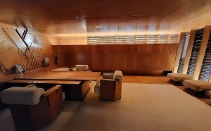 The name of the exhibition describes what the viewer will see: demolition. The artist has dismantled the gallery’s walls and panelling and used the fragments and debris from them to create a series of art works, which together make the gallery look like a building site. This might sound ridiculous, but the sculptural forms he created from the fragments of the gallery’s structure are both intriguing and exciting. It looks like someone had exploded a bomb within the gallery. However, certain elements remain untouched: cctv cameras, light switches, smoke detectors, and electrical sockets. Kawamata is well known for his site-specific creations. In addition to the sculptural ensembles that he created using the fabric of the gallery, there are several beautifully intricate three-dimensional maquettes of other projects the artist has planned or carried out.