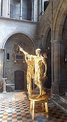 ONE OF LONDON’S FEW remaining pre-1666 (Fire of London) buildings is the church of St Bartholomew the Great close to Smithfield Market. Founded in the 12th century, the building has many Norman (Romanesque) features. It also contains some contemporary artefacts including “Colloquy” (a work made from glass) by Sophie Arkette, and “St Bartholomew. Exquisite Pain” (a work in gilded bronze) by Damien Hirst.