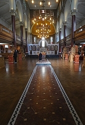 The Anglican parish, which was based in the former All Saints, merged with another in 1955. Then the church was let to the Russian Orthodox faith and its name changed to its present one. In 1978, the Sourozh Diocese purchased the edifice. The Sourozh is under the control of the Patriarchate of Moscow. The church in Ennismore Gardens Mews has a multi-national Orthodox congregation. I asked a bearded priest how the cathedral differed from the Russian church in Harvard Road, Chiswick. He replied: