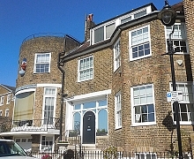 There is a terracotta urn in an alcove high above the bow window. A passer-by with a strong Irish accent despite having lived in Chiswick for 65 years told me that this was something to do with Josiah Wedgwood (1730-1795). This might possibly be the case, but I cannot be certain about it. Wedgwood’s associate Thomas Bentley (1731-1780) did live in Chiswick. According to Lloyd Sanders in his “Old Kew, Chiswick and Kensington” (published 1910):