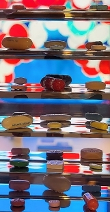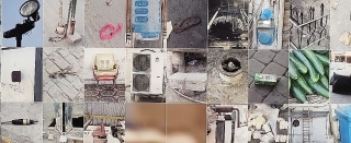 The exhibition in Cork Street includes 4 intriguing images. Each one consists of a mosaic of thousands of tiny photographic images, each one not much larger than a passport photograph. The photographs are not arranged randomly and subjects in neighbouring photographs seem to be unrelated to each other. They are put together in ways that when seen from a distance, form either large objects or abstract patterns. The resulting images are both fascinating and unusual.