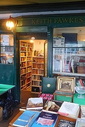 IN THE SIXTIES, there were at least six antiquarian/second-hand bookshops in Hampstead village. Two or three of them were in Flask Walk, a quaint passageway leading northeast from Hampstead High Street. Now, there is only one in Hampstead (apart from an Oxfam bookshop), and that is Keith Fawkes’s store on Flask Walk… currently, the last of the breed.