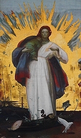 The Keats bust is near the Lady Chapel, in which I saw a remarkable painting by Donald Chisholm Towner (1903-1985), who lived in Hampstead, in Church Row from 1937 until his death. The church’s guidebook revealed: