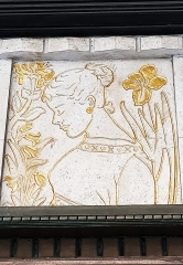 Barker’s former shop, a lovely art deco edifice, which opened in 1933, was designed by Bernard George (1894-1964). Between 1928 and 1962, he was the chief architect for Barker’s of Kensington in-house design group. It is worth examining this building closely to enjoy is many attractive details.