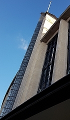 WE VISITED TWO churches in Suffolk, and inside them we spotted three things that particularly interested us. The first church is in Cavendish, The Parish Church of St Mary the Virgin. Standing on a hill above the village, its construction dates from 1300 and was largely completed by 1485. Some restoration work was carried out in the 19th century. One of the two things that fascinated us in this church is affixed to the inside of the north wall. It is a bas-relief depicting the Crucifixion. It is a reredos of Flemmish make, created in the 16th century. It is framed in a Victorian surround designed by Ninian Comper (1864-1960) in 1895. The sculpted reredos was brought to the church from the private chapel of the hymn writer Athelstan Riley (1858-1945) in London, following his death.