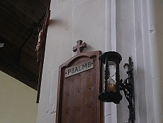 The other curiosity in this church, which has memorials to the philanthropists and local parishioners Baroness Sue Ryder and Baron Leonard Cheshire, is on a wall just behind the 19th century wooden pulpit within arm’s reach of the preacher. It is an hourglass, looking like a large egg-timer, which the priest could use to time his sermon. I had never seen such a thing in a church. Less curious but also fairly unusual are the 13 wooden crucifixes on the interior walls of the bell tower. These were made from wood salvaged from the Western Front during WW1 and each one commemorates one of the men from Cavendish who were killed in the conflict.