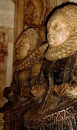 The other church we visited on our recent trip to Suffolk was St Mary in Stoke by Nayland, which was sometimes painted by John Constable (1776-1837), who was born nearby in East Bergholt. Built in Perpendicular Gothic style between 1300 and 1481 it is very majestic, like a small cathedral. The church is full of interesting monuments including many fine brasses. It was one of the funerary monuments that particularly intrigued us: the Lady Anne Windsor monument. Anne lived from about 1568 until 1615. A stone carving depicts her lying with her head on a pillow. At her feet, there is a carving of a kneeling man, Anne’s son. By her head, two carvings depict a pair of kneeling women, Anne’s daughters. Look closely at this pair and you will notice that their hands have been broken off. Their arms are merely amputated stumps. What is going on here?