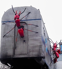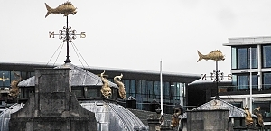WEATHERVANES ATTRACT BOTH wind and my attention. The variety of forms that these wind direction indicators assume is why I enjoy looking at them. A few days ago, whilst crossing London Bridge I spotted a building with two weathervanes on its roof. They are shaped like fish. But they are not alone because the roof is decorated with more metal fish. Their presence is appropriate because between 1875 and 1982, this arcaded edifice next to the river was home to the Billingsgate fish market. Today, the place is used as a venue for gatherings of various sorts.