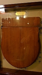 Until 1979, few people knew, or even suspected, that Blunt had been involved with spying for the Soviet Union. When this came out into the public domain, Blunt’s downfall commenced. He was stripped of his knighthood and his Honorary Fellowship at Cambridge’s Trinity College was rescinded. Also, Blunt resigned as a Fellow of the British Academy. Soon after his exposure as an espionage agent, who worked against his own country for the Soviet Union, Blunt ceased residing at Home House. In 1989, the Courtauld Institute shifted from Home House to larger premises in Somerset House in the Strand. Home House remained vacant until 1998, by which time it had been beautifully restored and adapted to become a private social club. During a recent visit to Home House when we were entertained by a friend, our host, a member, took us to see an interesting exhibit, which is housed in the wash basin area of one of the Club’s unisex toilets. We were shown a glass-fronted display case containing a wooden furniture item. It bears a label with the words: “From the bathroom of Sir Anthony Blunt”. The labelled object is the toilet seat on which Blunt must have sat numerous times, and its wooden lid. Another case in the room contains Blunt’s telephone. Although the loo seat and the ‘phone are unremarkable except for their provenance, the rest of Home House is a visual delight.