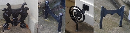 Despite its humble and basic function, boot scrapers, like other items of street furniture, the coal hole covers and manhole covers, attracted the creative side of their manufacturer’s minds. The result is that boot scrapers can be found with an amazing variety of decorative features. The four examples illustrated were found outside four neighbouring houses in a street in Warwick (Warwickshire). The basic design of each of these is the same, but their appearances differ considerably,