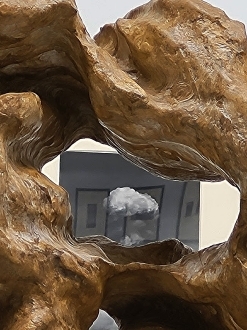 The walls of the rooms in the gallery are lined with photographs of atomic and hydrogen bomb test explosions (‘mushroom clouds’ etc.), as well as of the devastation that the former caused in Hiroshima and Nagasaki. Although many of the photographs are beautiful as works of art, they are grim reminders of the horrific destructive forces unleashed by detonating nuclear bombs. However, as the curator explained, many of the photographs have been composed in such a way that the viewer is unaware of the destruction going on beneath the picturesque clouds.