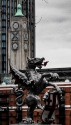 Thirteen of these dragons can be found in London. Some of them were placed at entrances to the City as late as the 1960s. The dragons are part of the City’s coat-of-arms, which was in use by 1381. In this emblem, a pair of them supports a crest.