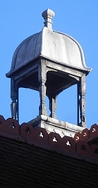 GROVE PLACE IS a short street running southwest from Hampstead’s steeply inclined Christchurch Hill. We often walk along it on our way to the lovely café at nearby Burgh House. A building containing numbers 29-31 Grove Place has often attracted my attention because its roof is topped with a couple of cupolas, each supported by four carved wooden pillars. These stand on either side of a grand central façade. The edifice bears a plaque, which is in an excellent state of preservation, that reads: